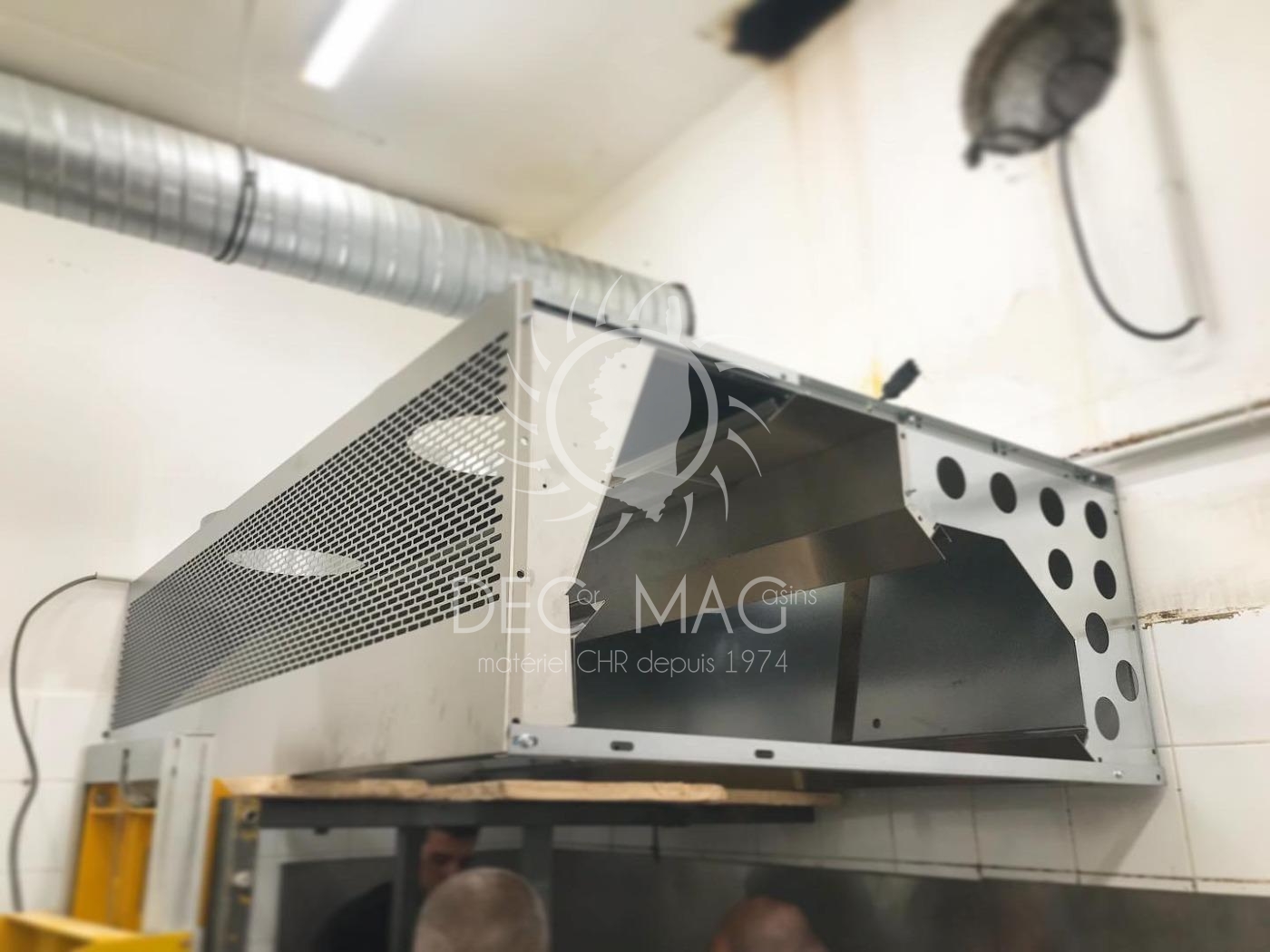Filtration des graisses et odeurs avec 3 systèmes de filtration : 30 filtres charbon actif, filtres synthétiques, filtres haute efficacité.
